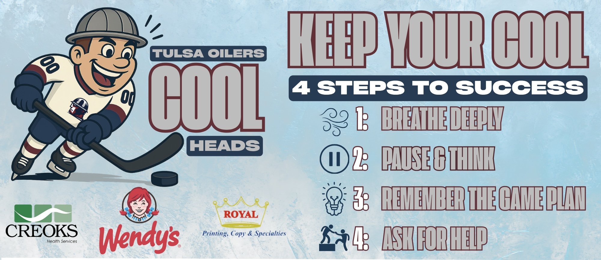 | The Cool Heads Program, featuring educational materials provided by CREOKS, is a school-assembly initiative that teaches elementary and middle school students skills for emotional regulation, temper control and resilience—both on and off the ice. Through interactive presentations, hands-on activities and visits from the Tulsa Oilers mascot, students learn practical tools for self-regulation and positive decision-making. Program Inclusions: • Name and logo on all promotional and educational materials • Placement on the Tulsa Oilers Cool Heads webpage • Social media posts and media outreach • Video board presence during Oilers games • Opportunity to distribute swag, coupons, and flyers to students • Program reaches a minimum of 15 schools each season |